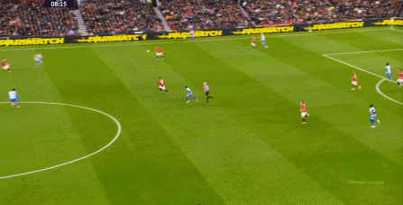 万幸在于,卢克-肖和此前球权转换时来到中场区域的库尼亚补防及时,才让这次危险没有波及到门将的身上: